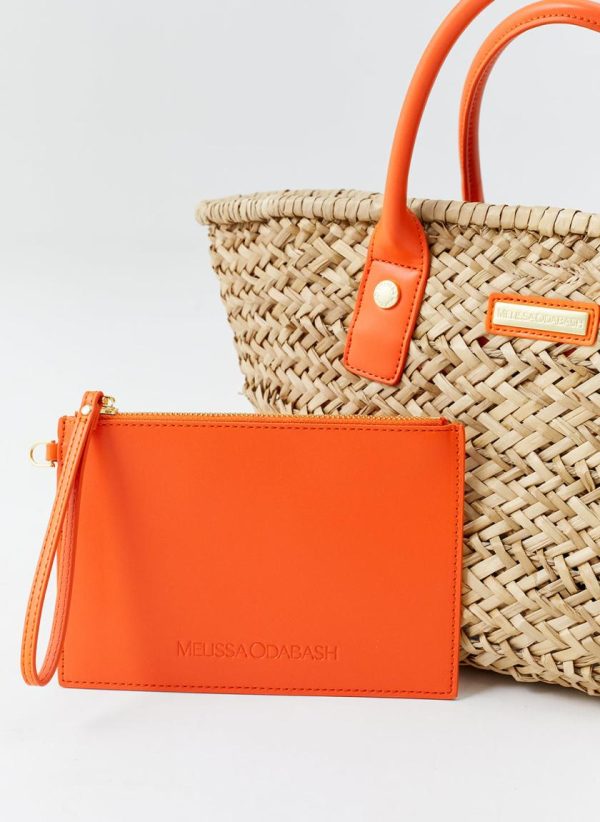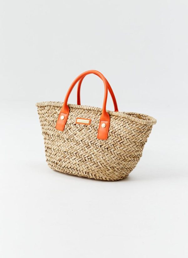 The Corsica bag is the perfect piece to add to your Summer accessories collection. Crafted from water grass in Natural tones, it features contrasting Orange leather trims. Drawing inspiration from traditional basket bags, the style is elevated with signature gold-tone hardware and a branded plaque. Roomy enough to house your beach essentials, inside you will find a detachable leather pouch with a zip fastening and wrist strap to store your valuables plus a magnetic closure for added protection.