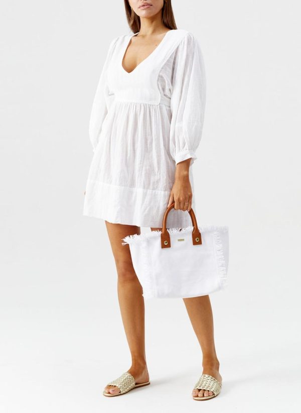 For those who favour a minimalist aesthetic, the Porto Cervo Mini Tote is one to invest in for your next getaway. One of our most popular styles, this classic White bag is roomy enough to house the essentials with three internal compartments including a zip up pocket for valuables. Balancing a polished design with relaxed details, this canvas tote features frayed trims, contrasting leather handles, luxe gold-tone hardware and is finished with a signature branded plaque.