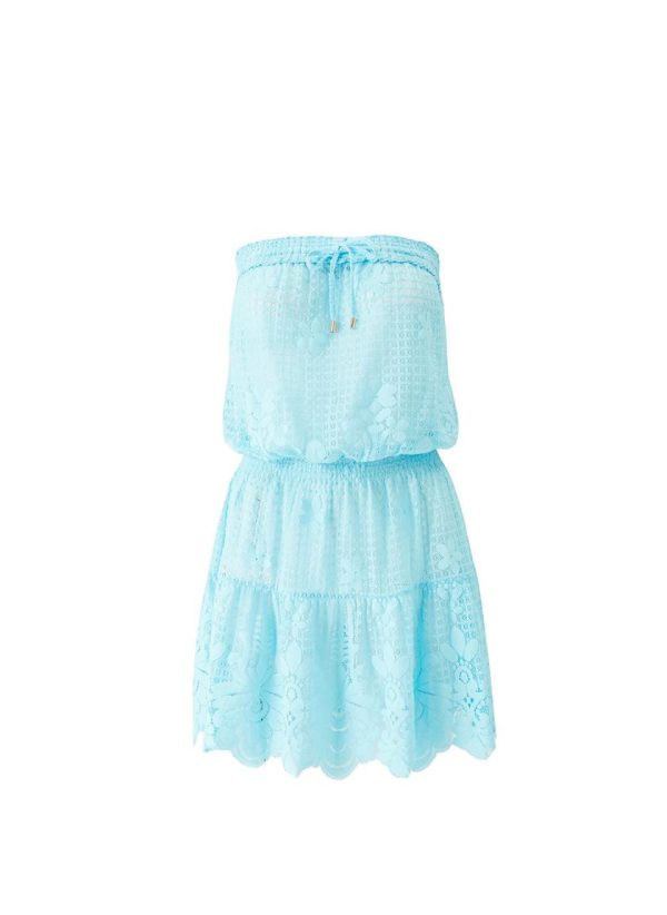 Perfect for your next beach vacation, add to your summer wardrobe with the Isla Dress. In an uplifting shade of Sky blue, this mini length dress has been crafted from cotton-blend lace fabric. This bandeau style is cut for a relaxed, loose fit with a drawstring detail at the neckline with gold branded cord-ends. A comfortable shirred waist makes this style ideal for slipping over your favourite Odabash swimwear.