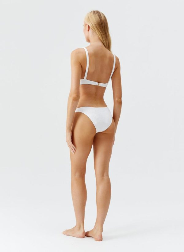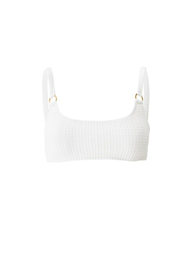 A modern classic, elevate your swimwear rotation with the Bari Bikini Top. A popular Odabash style thanks to its pared back design, this style has been updated for Spring/Summer 2025 in Squares. Crafted from premium swim fabric in chic white, it features a tactile brocade texture. The bralette top boasts over-the-shoulder straps with a clasp fastening at the back, finished with gold rings. Style with the matching hipster bikini bottoms to complete the set.