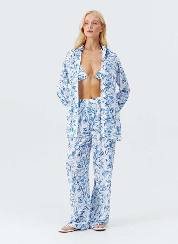 Elevate your destination wardrobe with the Olivia Trousers in this season’s hero Blue Leaf print. Cut for a timeless wide leg silhouette, this show-stopping pair features a comfortable elasticated waistband. For a co-ordinated look, we recommend styling with the Paige Shirt in the matching print and a classic Porto Cervo as you enjoy a day of sight-seeing around the old town.