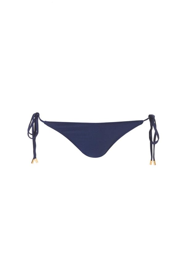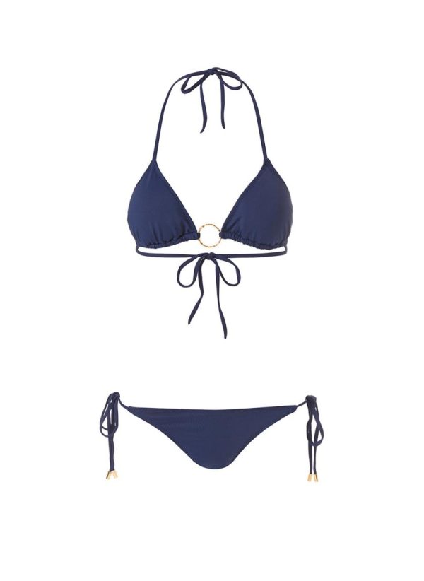 Bring the Miami Bikini with you on your next vacation. In a universally flattering shade of navy, the bikini is elevated with golden hardware accents from the bamboo inspired ring at the bust to branded golden cord ends on the tie side bikini bottoms. The classic tie-side fastening on both the bikini top and bottom ensure an optimal fit, allowing you to move up or down sizes to achieve your desired level of coverage without compromising on fit.