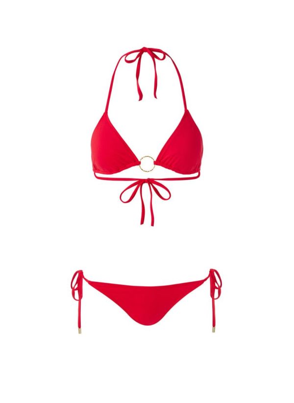 Vibrant and playful, the Miami Bikini in Red is a hotly anticipated addition to the 2025 Core Collection. Melissa’s Miami bikini, often referred to as the Ferrari of the swimwear world boasts an Italian cut and less coverage than other triangle styles in the collection. The Miami top features a signature bamboo ring trim at the centre bust and the Miami bikini bottoms are finished with golden branded cord ends.