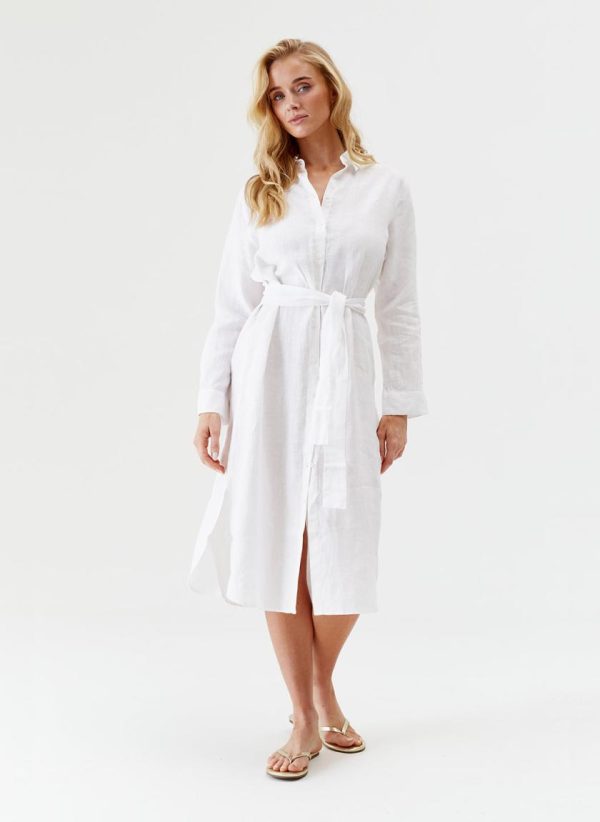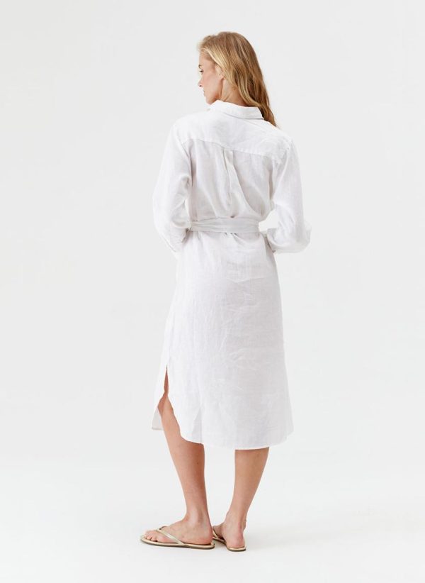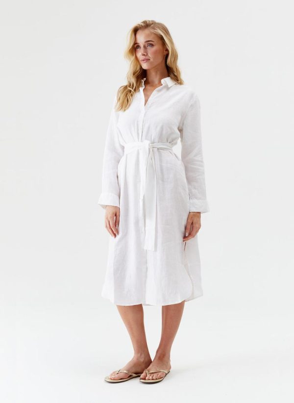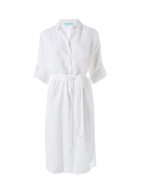 Invest in timeless pieces you’ll revisit for summers to come like the Dania Dress. Crafted from pure, linen, this cool white dress falls to an elegant mid-length. Easy to wear, its shirt silhouette bridges the gap between smart and casual. Side slits keep the style breezy while the belted waist defines your shape. Roll up the sleeves and pair with our iconic Fedora and Porto Cervo Mini Tote for a considered destination look.
