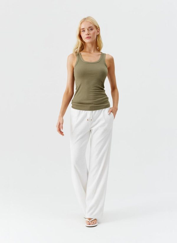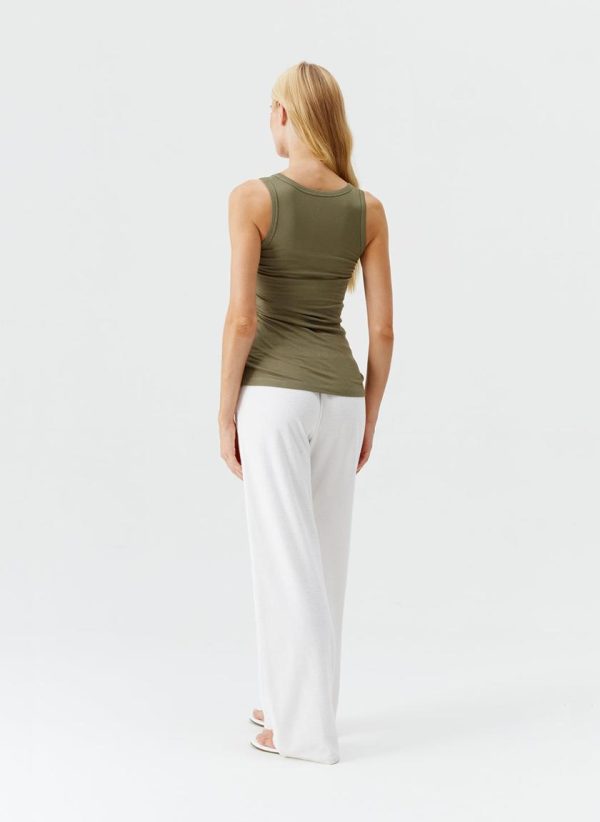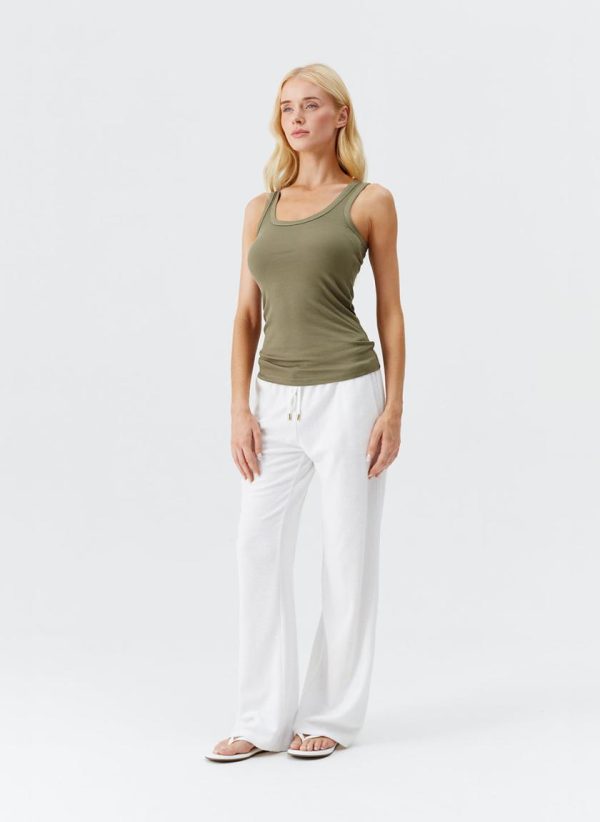 Introducing the Cora Vest top in exclusive shade of Olive, this minimalist silhouette thoughtfully designed to slip seamlessly into both your everyday and vacation wardrobe. This staple ribbed vest top has an elegant, scooped neckline and boasts golden branded hardware at the hem. The Cora is the perfect piece to pair with separates from Odabash Lounge, new favourites from the 2025 cruise collection or staples already found in your closet.