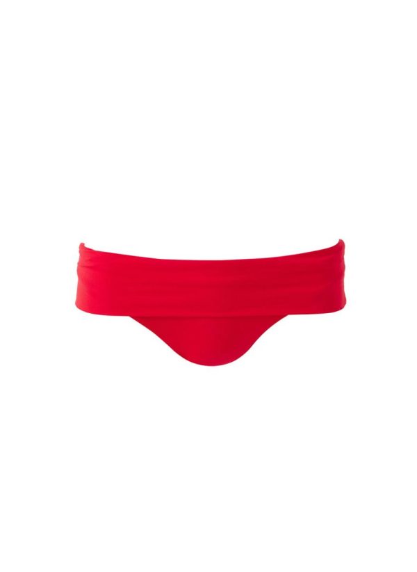 Perfect for mirroring the heat of summer, the Brussels Red Bikini Bottoms are a vacation staple. The bottoms are cut for full coverage, sitting on the hip and finished with a flattering fold-over ruched panel. Pair with the matching halterneck bikini top for a complete look.