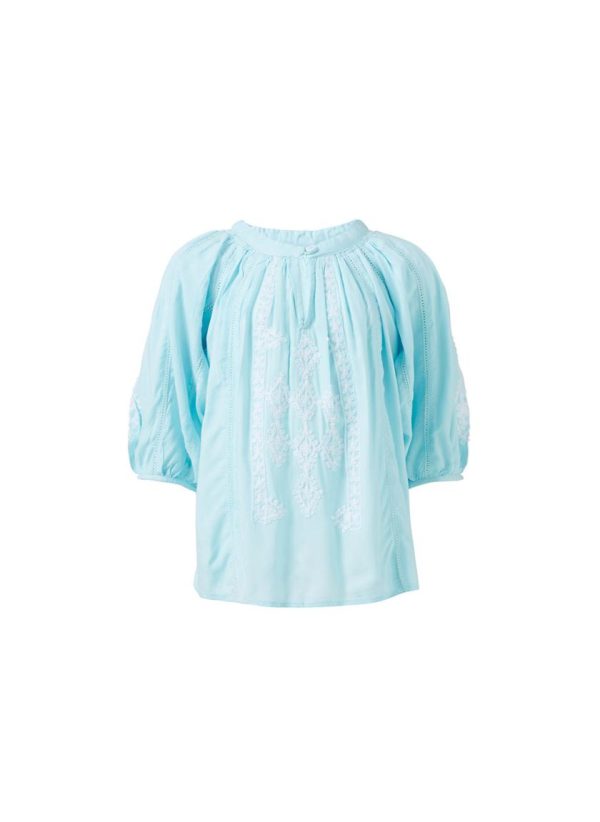 Odabash has vacation essentials covered with the Girls Aliya Shirt in Sky/White. Designed with premium intricate embroidered detailing on the centre front and sleeves, this silhouette embodies signature Odabash charm. Pair this light-weight top with the matching Sienna Sky/White Shorts making the perfect co-ord for a playful ensemble that will be sure to make your mini me stand out this summer.