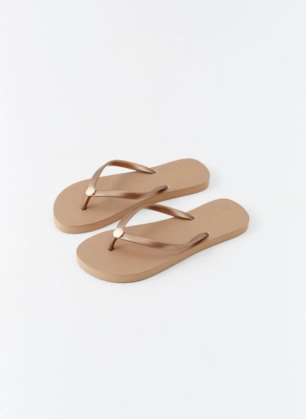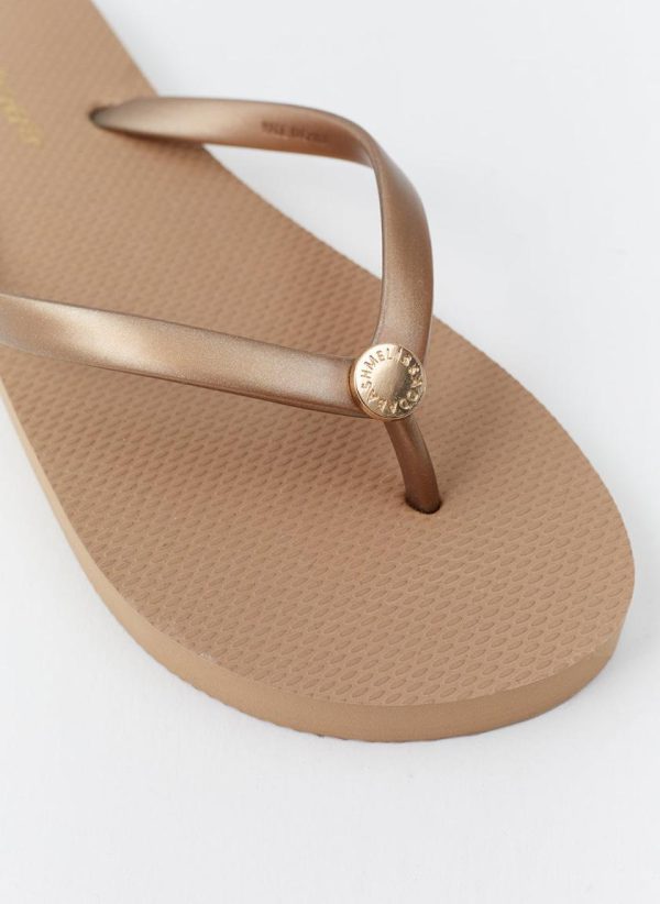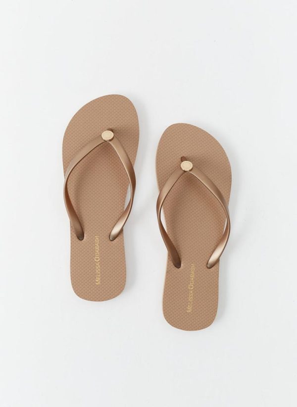 For those who favour minimalist design, this seasons exclusive Rubber Flip Flops are an essential addition to your summer wardrobe. In a unique metallic shade of Bronze this understated pair of sandals are crafted from lightweight, comfortable rubber. Casual yet elegant, this style is finished with gold-tone hardware at the base of the pvc toe post cementing their luxury status.