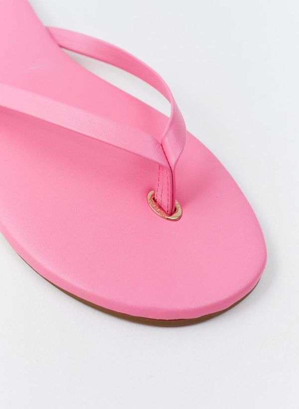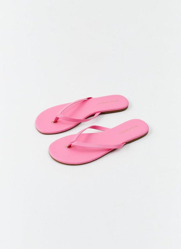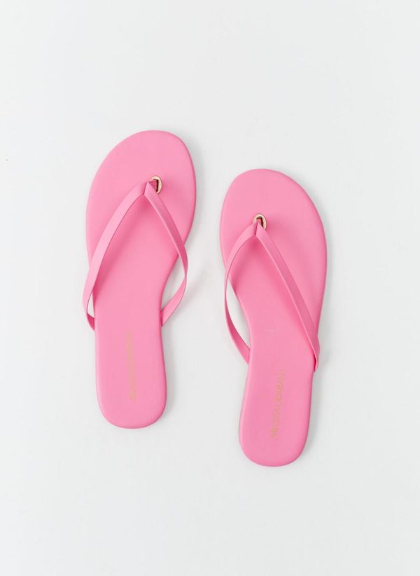 Add a bold pop of colour to your holiday outfits with our Leather Flip Flops, the sleek and minimalist design is instantly elevated by the vibrant shade of Hot Pink they come in. The classic silhouette is made from genuine leather with comfortable rubber soles. Finished with golden branded hardware at the base of the toe post.