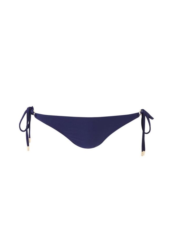Enjoy lazy days spent soaking up the sun on deck in the Cancun Bikini Bottoms. A staple in the wardrobe of every Odabash woman, this classic Navy style is crafted from premium Italian swim fabric. Elegant and understated, tie side bottoms adorned by gold-tone branded cord ends add a touch of luxury and are mirrored by the golden rectangular links on the matching triangle bikini top.