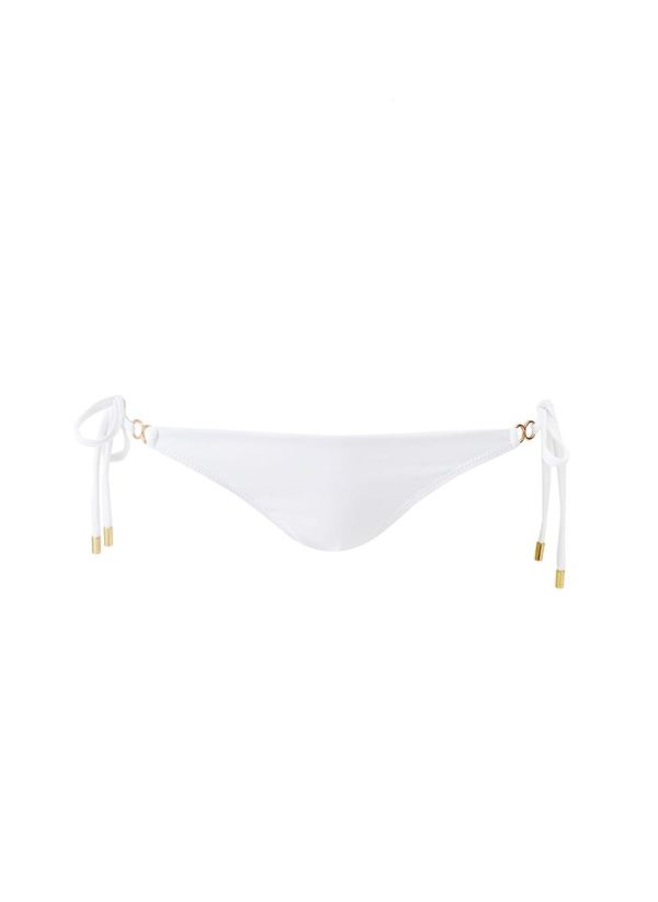 Complement sun-kissed skin with the Faro Bikini Bottom. A head-turning style in crisp White, this two-piece is crafted from premium swim fabric with SPF 50+ protection. The tie-side bikini bottoms are adorned with connecting gold rings, mirroring the detail of the top. Style with the matching bralette top to complete the set.