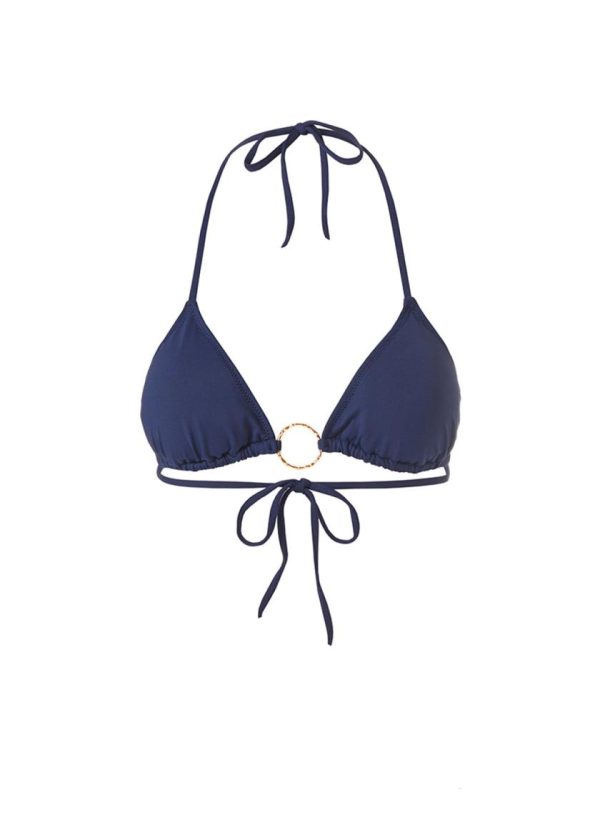 Bring the Miami Bikini Top with you on your next vacation. In a universally flattering shade of navy, the bikini top is elevated with golden hardware accents. The classic tie fastening on the bikini top ensures an optimal fit, allowing you to move up or down sizes to achieve your desired level of coverage without compromising on fit. Style with the matching Miami Navy Bikini Bottoms to complete the set.